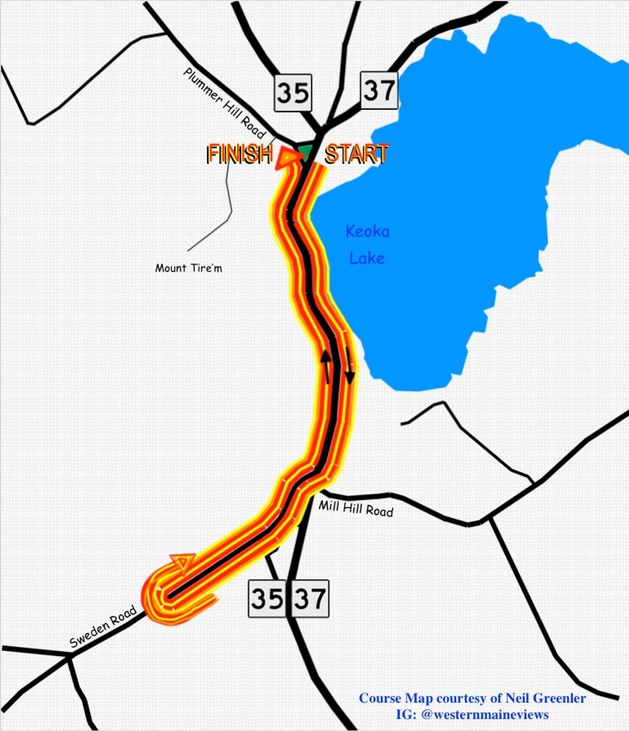 The out and back race begins and ends at the picturesque Waterford Town Common. You then travel along beautiful Keoka Lake before enjoying the rolling hills of Sweden Road.